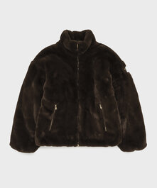 大粒でふんわりとしたボア素材を用いたブルゾン。